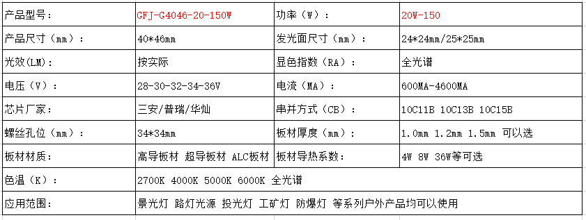 ◇適用于:攝影設備 投光燈 路燈 工礦燈 等戶外產品光源之首選